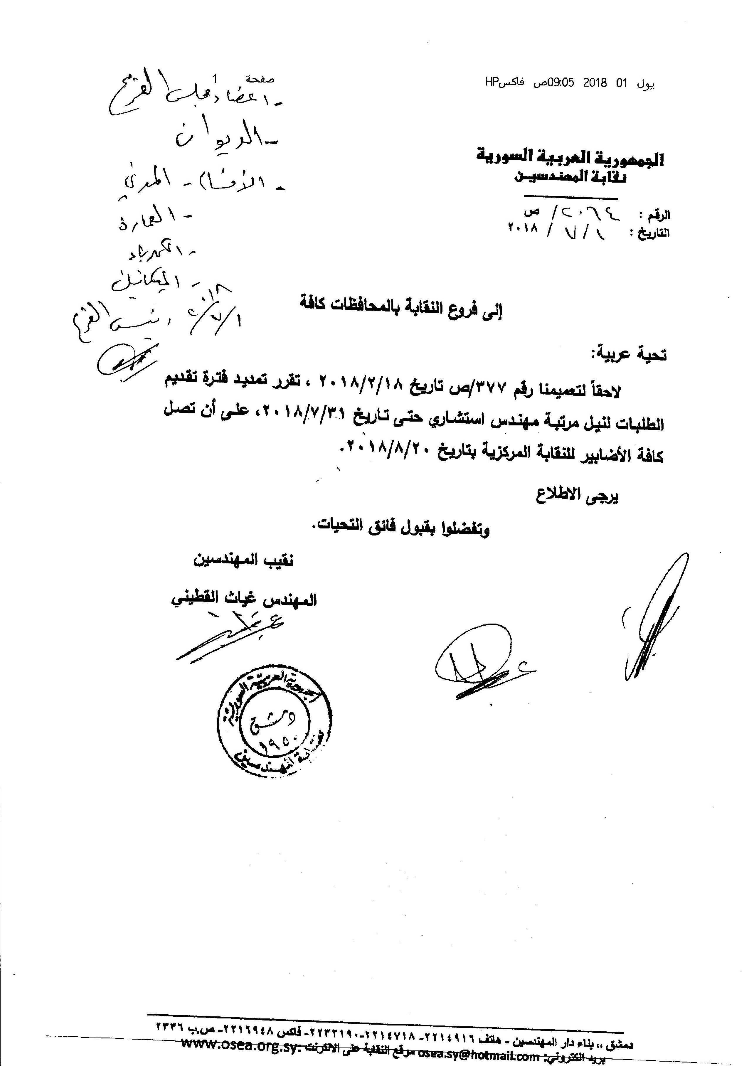 اعلان تمديد لنيل مرتبة مهندس استشاري 2018